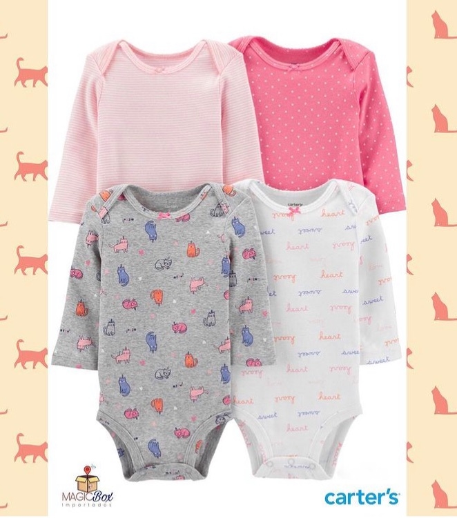 Eu acho que vi um gatinho.. Esse kit de bodies está muito fofo, principalmente para quem adora gatos. O inverno da sua gatinha vai ficar ainda mais divertido. 🐈 🐱.